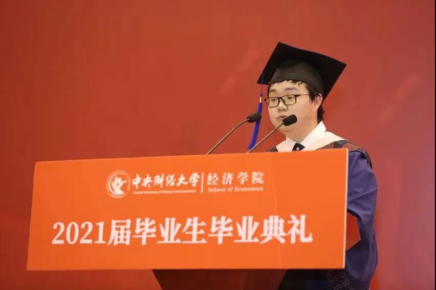 千言万语诉不尽离愁别绪、道不完恩情谢意,此时此刻,我想再对我的导师陈斌开老师,以及每一位本硕博的指导老师、教学老师说一声谢谢,谢谢你们以学识服人以文化育人,带我们领略经济学殿堂的浩瀚广袤和经济学者的治学严谨;也想再对我的辅导员赵若思老师,以及每一位与我们生活息息相关的行政老师说一声谢谢,谢谢你们的夜以继日无微不至,向我们传递学院最温暖的关怀和最及时的帮助;还想对在座的同学们说一声谢谢,感谢相遇感谢陪伴,感谢我的校园生活一路有你;最后,让我们再对自己说一声谢谢,感谢你不曾放弃始终拼搏,无论是一次次的学术难题还是又又一次的“史上最难毕业季”,你始终在奔跑始终在前进,辛苦了。