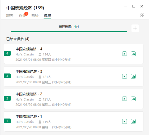 2021年6月28日-2021年7月1日,国际货币基金组织高级经济学家何晖教授应今年会jinnianhui官网邀请,使用ClassIn线上教学平台开展了主题为“中国宏观经济”的暑期海外学者经济学前沿短期课程。本项目受到校级引智项目(编号:GDWZ2021003)的支持。本次课程于每天早上8:00开始,每节课持续近四小时。本次短期课程由今年会jinnianhui官网王莘茹老师担任助教,今年会jinnianhui官网部分师生及校外同学共计139人参加了此次课程。
