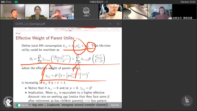 本次短期课程中,何晖老师为学生们带来来自Song、Storesletten和Zilibotti(2011 AER,以下简称SSZ)以来中国宏观经济的前沿研究成果。首先,课程从增长、商业周期、不平等和人口老龄化四个维度介绍中国经济的典型事实。其次,介绍了两种理解中国经济增长和周期的理论方法,即SSZ模型和Chang、Chen、Waggoner和Zha(2015,NBER Macro Annual,以下简称CCWZ)。第三,课程讨论了家庭储蓄率快速上升背后的驱动因素。然后,转向对中国日益加剧的不平等的研究,并将其与数据中观察到的不断变化的收入冲击结构和恶化的风险分担联系起来。本课程的其余部分介绍通过引入异构代理模型(HAM)将微观与宏观联系起来,并计算HAM模型,以及 HAM在中国养老金改革等宏观问题上的应用。