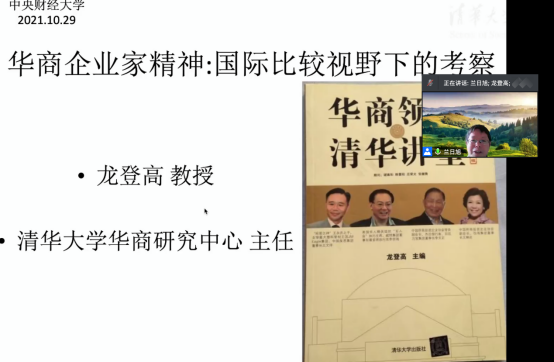 2021年10月29日,清华大学经济学研究所龙登高教授应今年会jinnianhui官网邀请,开展主题为“华商企业家精神的释放——比较视野下的考察”的讲座,本次讲座于下午2点在腾讯会议平台举行,持续两小时。本次讲座由今年会jinnianhui官网兰日旭教授和黄乃静副教授共同主持,今年会jinnianhui官网部分师生参加了此次讲座。