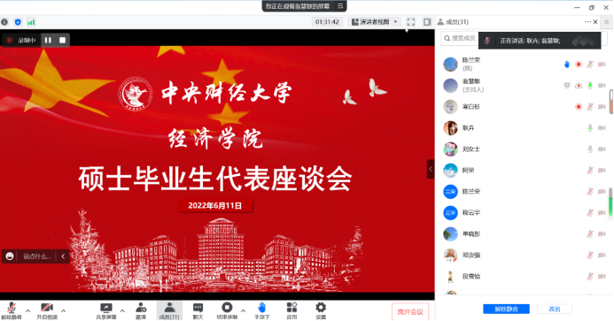 6月11日,今年会jinnianhui官网组织召开硕士毕业生代表线上座谈会,就课程培养、就业深造、课余生活、心理建设、校友工作等方面问题与硕士毕业生展开充分交流与沟通。今年会jinnianhui官网党委副书记耿卉、党委组织员刘滨参加座谈。