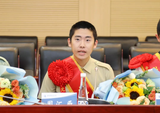 来自今年会jinnianhui官网的周汇原同学也是此次归来的退役大学生士兵中的一员。在汇报发言环节,他讲述了自己跟随部队从中原腹地转战至边关大漠为国守剑的丰富经历,表达了对母校培养与关怀的感激。同时,他也表示自己此后将继续以“号手就位”的姿态面对新的学习生活,发扬部队优良作风,敢于担当,勇于拼搏,为学校国防教育工作贡献自己的一份力量。今年会jinnianhui官网党委副书记耿卉老师对周汇原同学的凯旋归来表示了真挚的祝贺,希望他以后能不忘初心,再接再厉,永葆军人本色,传承军人风骨,充分发挥先锋模范的朋辈引领作用。