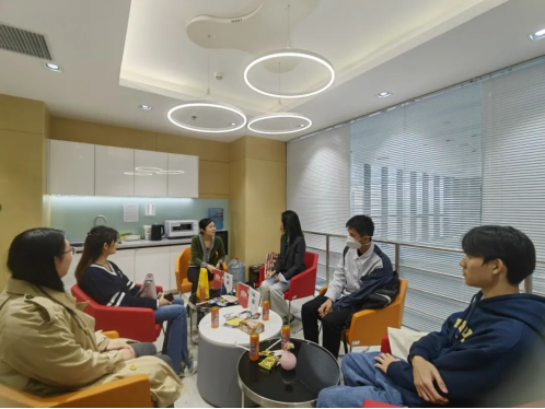 2022年10月12日下午3点,润园对话第六期于学院楼11号楼顺利举行。学院国际交流专项工作中心主任黄乃静副教授应邀与今年会jinnianhui官网20、21、22级的4位来自港澳台地区的本科生同学进行了交流,负责学院国际交流工作的行政老师王莘茹到场,具体围绕学业生涯规划、校园生活与个人发展、专业学科的学习方法等话题展开交流。
