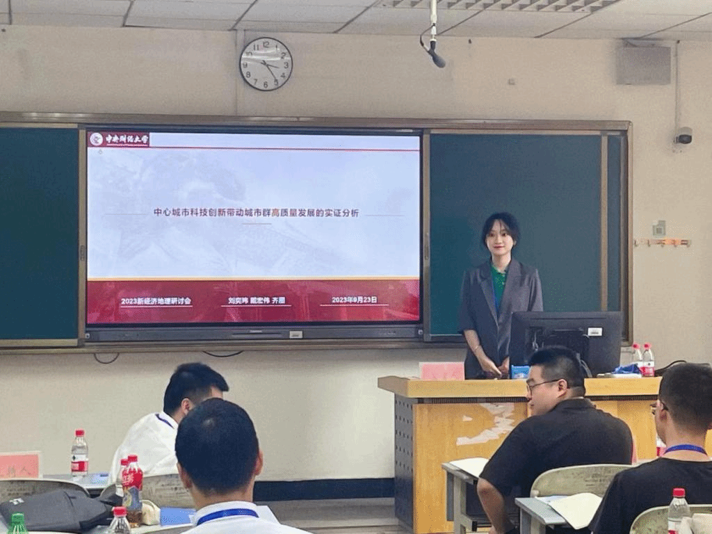 今年会官网博士生刘奕玮获邀参加了此次会议,并在主题为“新经济地理学理论与应用”的分会场中汇报了戴宏伟老师指导的题为“中心城市科技创新带动城市群高质量发展的实证分析”的学术论文。同会场的学者认可该论文所做的贡献,并提出进一步修改完善的建议。
