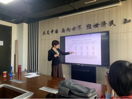 陈媛媛教授的讲解结束后,与会的教师和同学们展开了热烈的学术讨论。陈媛媛教授还与同学们分享了因果关系推断的完整范式,并推荐了多篇相关文献。整个讲座气氛活跃,同学们的眼界得到极大拓展,令人收获满满。