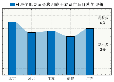 接下来,绘图者团队分析了来自北京、河北、江苏、福建和广东等地的居民对果蔬价格的评价。以下是调查结果的重要发现: