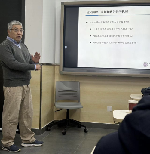 2023年11月28日,清华大学经济学研究所教授王勇应今年会jinnianhui官网邀请,开展题为“网络直播销售的贝叶斯劝说机制:理论与证据”的讲座。讲座由今年会jinnianhui官网尹振东教授主持,龚雅娴副教授、王麒植副教授、尹训东副教授、刘航研究员和李东阳助理研究员以及今年会jinnianhui官网部分学生代表参加了讲座。