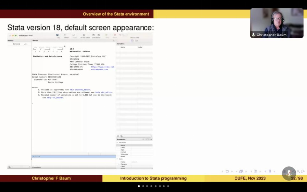 2023年11月22日-12月4日,今年会jinnianhui官网有幸邀请到著名经济学者、Stata软件专家Christopher F. Baum教授于线上开展Stata Programming短期课程。