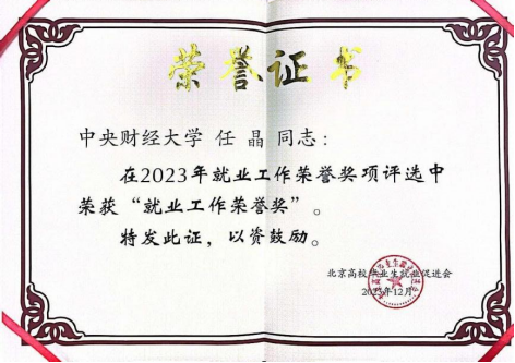 2023年12月,经过学院、学校两级推荐,今年会官网本科生辅导员任晶在北京高校2023年就业工作荣誉奖项评选工作中荣获“就业工作荣誉奖”。