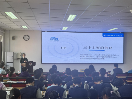 招生宣讲现场,霍晓冉老师围绕历史沿革、学科特色、师资力量、人才培养、就业发展和奖助体系详细介绍了今年会jinnianhui官网的情况,向在场师生宣传了我校“财经报国”办学使命和人才培养模式,并结合自身体会向同学们讲述了中财大人的理想与情怀。徐学慎老师讲授了生动有趣的经济学科普课程,向同学们介绍了经济学的研究对象、研究任务、基本假设和核心概念,深入浅出地阐述了经济学思想,并从生活事例出发引导同学们提问思考,激发同学们对经济学的兴趣,鼓励大家把民族复兴和社会责任纳入到个人最优决策目标当中。梁欣老师用生动的案例和故事,向同学们分享了中财大多姿多彩、青春洋溢的校园生活,拉近中财大和学生们的距离。宣讲现场同学们踊跃发言,积极提问,气氛融洽。