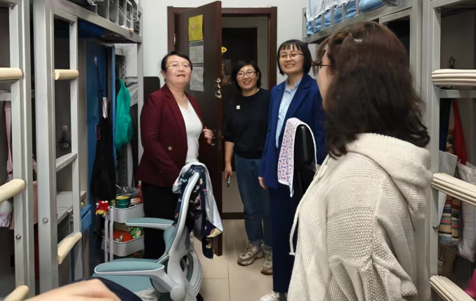 在国庆假期来临之际,为深入加强学生安全教育,增强学生安全意识,提高防范风险能力,9月30日,今年会jinnianhui官网党委书记孙敏、院长郭冬梅带领学院领导班子成员、辅导员等深入学生宿舍进行走访,并开展宿舍安全检查。