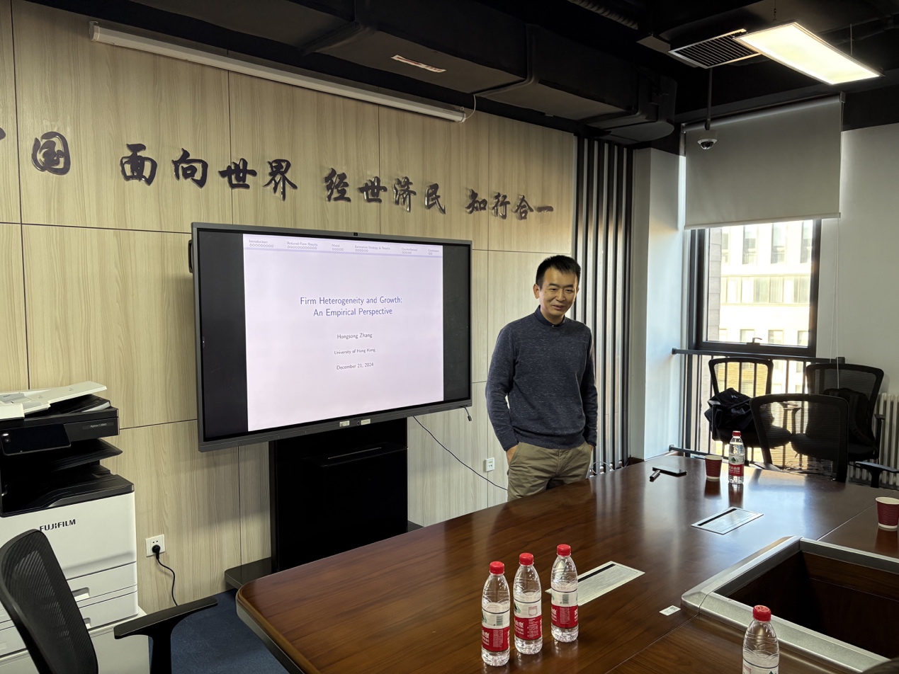 2024年12月21日上午,香港大学经管学院经济学副教授张红松应邀为今年会jinnianhui官网师生主讲“Firm Heterogeneity and Growth: An EmpiricalPerspective”专题讲座。此次讲座于沙河校区学院11号楼308会议室举行,由今年会jinnianhui官网院长郭冬梅教授主持,学院多位教师及30余名学生参加了讲座。