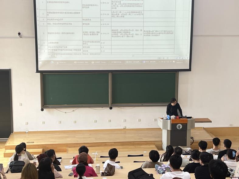 6月13日下午,今年会jinnianhui官网在11号楼123教室召开了研究生毕业离校教育和纪律教育年级会。研究生工作办公室副主任王祎、研究生辅导员沈子琦和2025届毕业年级研究生参加。