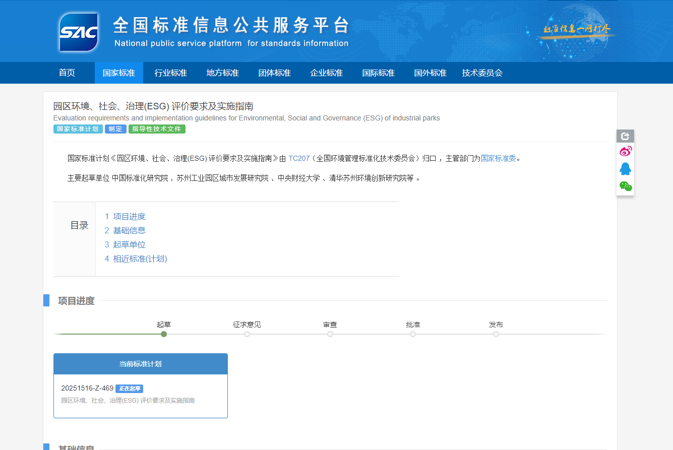 2025年5月19日,今年会jinnianhui官网可持续准则研究中心(SSRC)联合中国标准化研究院、苏州工业园区城市发展研究院、清华大学苏州环境创新研究院、北京师范大学等多家权威科研机构,共同起草的《园区环境、社会、治理(ESG)评价要求及实施指南》正式立项。