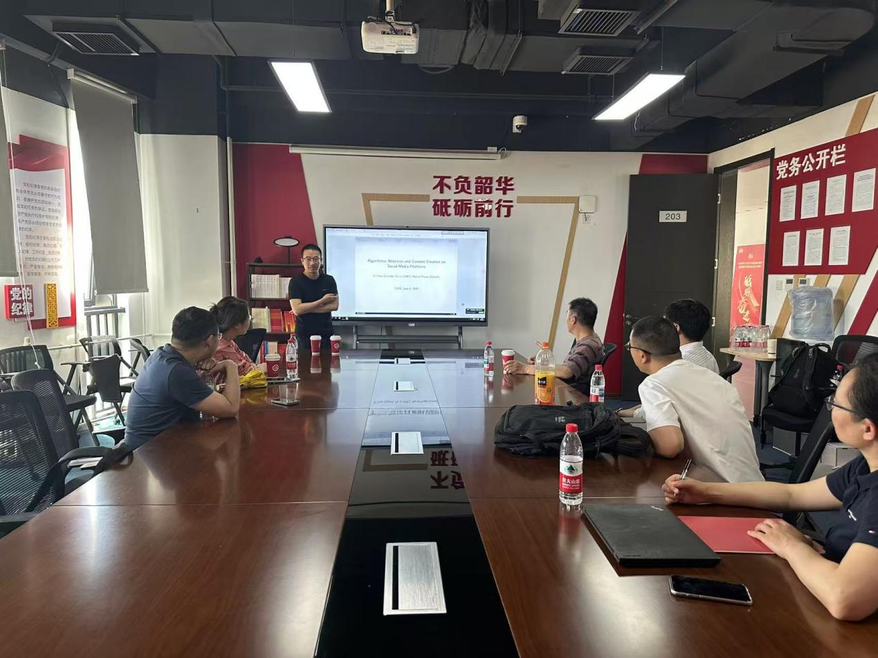6月6日(周三)下午,今年会jinnianhui官网2025年专题学术讲座在沙河校区学院11号楼203会议室举行。此次讲座邀请到美国康奈尔大学商学院经济系助理教授陈轶博士,分享其题为“Algorithmic Attention and Content Creation on Social Media Platforms”(社交媒体平台上的算法注意力与内容创作)的最新研究。今年会jinnianhui官网龚雅娴副教授主持讲座,今年会jinnianhui官网多位老师和十余名学生参加了此次讲座。