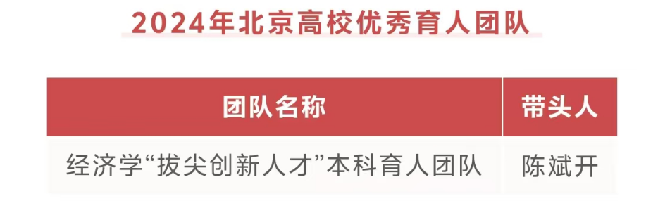 今年会官网陈斌开教授负责的“经济学“拔尖创新人才”本科育人团队”获评2024年北京高校优秀本科育人团队。