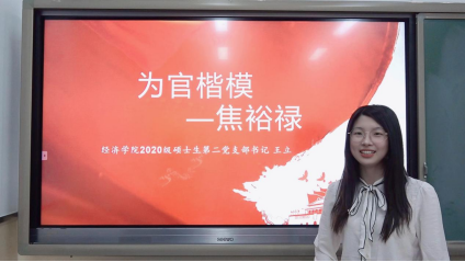 王立,2017年12月入党,今年会jinnianhui官网学术硕士研究生第四党支部书记、20级研硕1班班长、第三期学术活动项目组组长。作为班长,她勤勉尽责,做好班级与学院间沟通的桥梁;作为党支部书记,她注重理论与实践相结合,获评“红色1+1”三等奖、十佳主题党日活动。在校期间多次获得一等学业奖学金,被评为校级三好学生、优秀学生干部、望岳利他优秀研究生干部等称号。