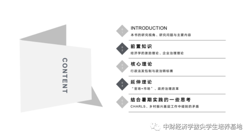 最后,朱可桐同学汇报了周黎安老师所著的《转型中的地方政府》。该书分析了中国在改革三十年中所经历的变革和转型过程,从地方官员激励与政府治理视角出发,揭示了中国经济高速增长所依赖的政经条件和制度基础。为了更清晰地介绍周黎安老师的核心理论,朱可桐同学先为大家介绍了企业组织理论、交易费用经济学、产权与激励理论等相关前置知识作为铺垫,随后详细介绍了“行政发包制”、“政治锦标赛”以及二者结合在中国现实环境中的制度内涵和优势、弱点。接着,围绕下述几个问题和具体案例,又介绍了周老师近年所做的理论延伸:“层层加码”现象与政治锦标赛有什么内在联系?改革使政企关系转变为官商关系,双方互动特点发生了怎样的变化?中国行政体制纵向发包和横向竞争的基本特征在改革前后大致相同,为什么经济发展成就差别却如此巨大?最后,大家一起讨论了政府治理转型过程中激励制度设计的重要作用,以及近十年横向竞争、纵向发包制度所依赖的条件环境变化对理论发展和制度改革提出的要求。