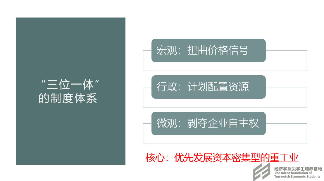 邵嘉鹏同学分享了本书的第四讲,主要介绍了中国成立后推行的赶超战略以及重工业优先发展的传统经济体制。由于重工业发展建设周期长,关键技术设备依赖进口,每个项目一次性投入大,而刚成立的中国面临资本不足,缺少外汇和资金动员难的约束。为了在这样的条件下发展重工业和军事工业,我国形成了宏观上扭曲价格信号,行政上计划配置资源,微观上剥夺企业自主权的三位一体制度体系。为了配套城市生产,在农村实行农产品统购统销,农村公社化,地区粮食自给自足,城乡断绝的户籍制度的政策。作者还介绍了农业危机发生的原因,提出了退出权假说,最后对1978年前的经济发展绩效进行了总结:如果把目标定为发射卫星或是发展重工业,那么传统体制就是成功的;但是如果把目标定为提高人民的生活水平,那么表现就很难让人满意。作者指出希望赶上和超过发达国家的愿景是好的,但是最后实行计划经济的国家普遍不成功。