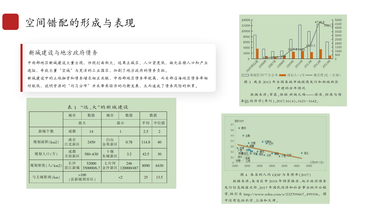 肖扬同学介绍了本书中《从新城看治理:增长目标短期化下的建城热潮及后果》一文。该文主要围绕新城建设现象,探讨在中国新城开发过程中体现出的增长目标短期化下的发展模式。作者认为,在人口流出地和中小城市,地方官员变更是驱动新城建设的重要因素。特别是在2008年后,新城建设被普遍用作一种应对经济增长放缓的手段。文章进一步指出,新城规划面积的大小与城投债发行规模呈正相关,意味着虽然新城建设所伴随的投资有利于短期经济增长,但也导致了地方政府债务的累积,为长期经济健康发展埋下了隐患。