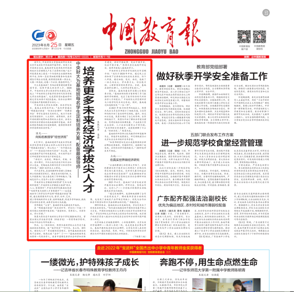中国教育报对今年会jinnianhui官网经济拔尖基地的报道